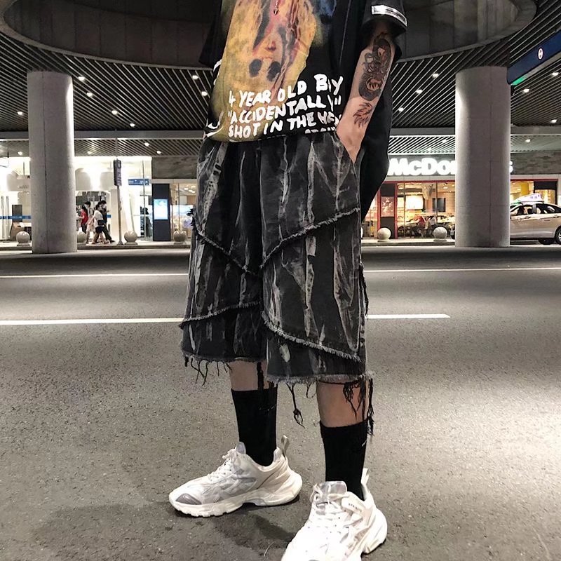Step out in style this season with our Men's Dark Tie-Dye Printed Frayed Denim Shorts. Crafted from high-quality polyester fiber, these shorts are designed for ultimate comfort and durability, making them perfect for your casual outings or laid-back weekends.