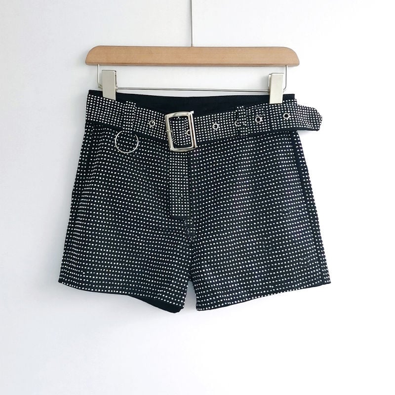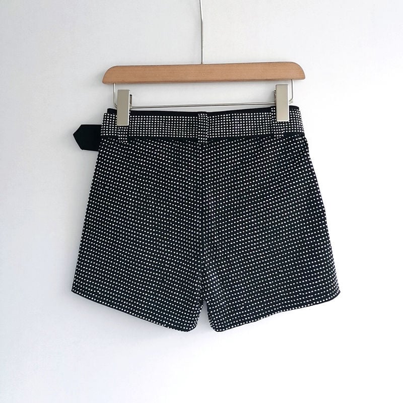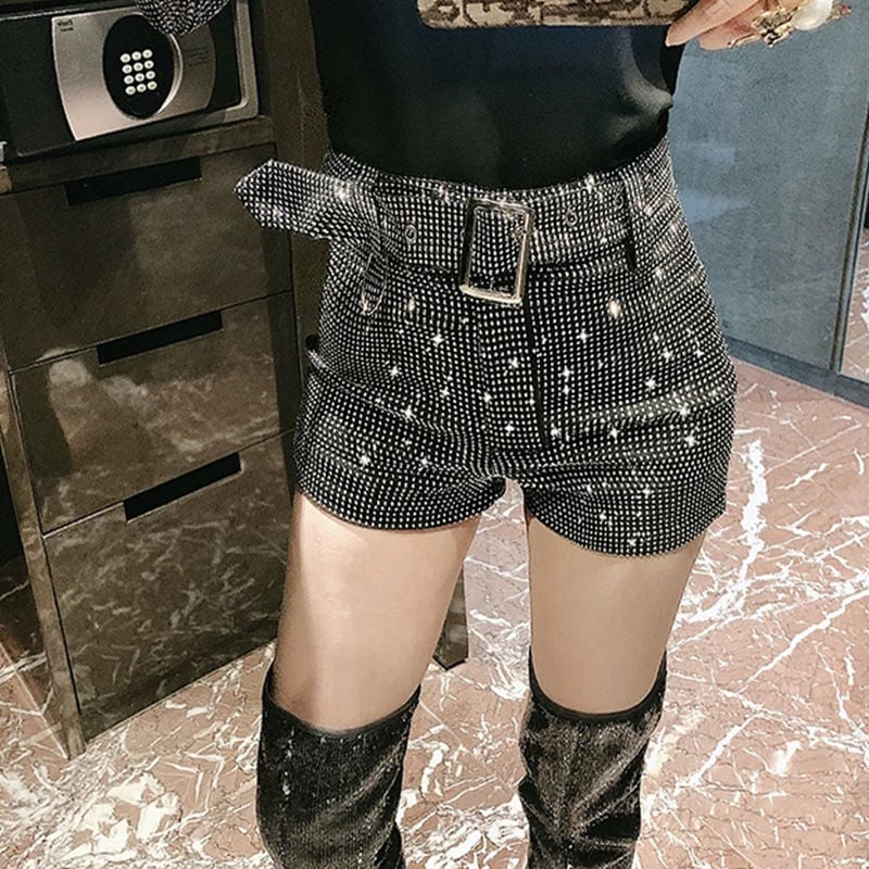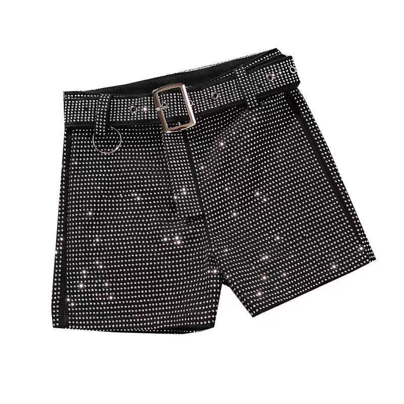 Adorned with stunning hot drilling accents, these shorts are not just about comfort; they are a fashion statement. The classic black color makes them versatile enough to pair with any top, whether you're heading out for a casual day or dressing up for a night out.