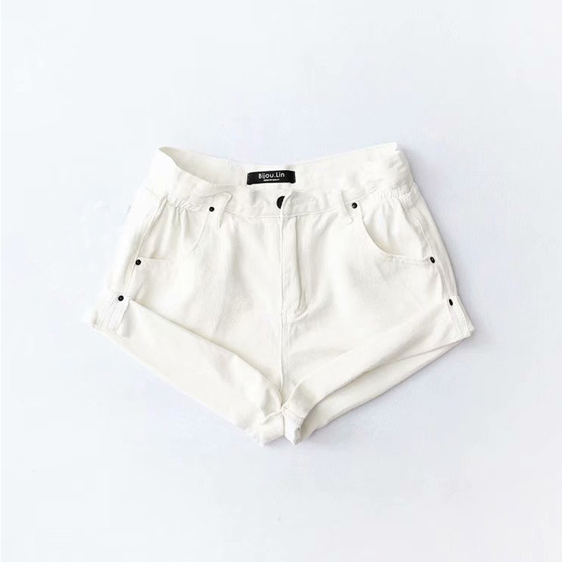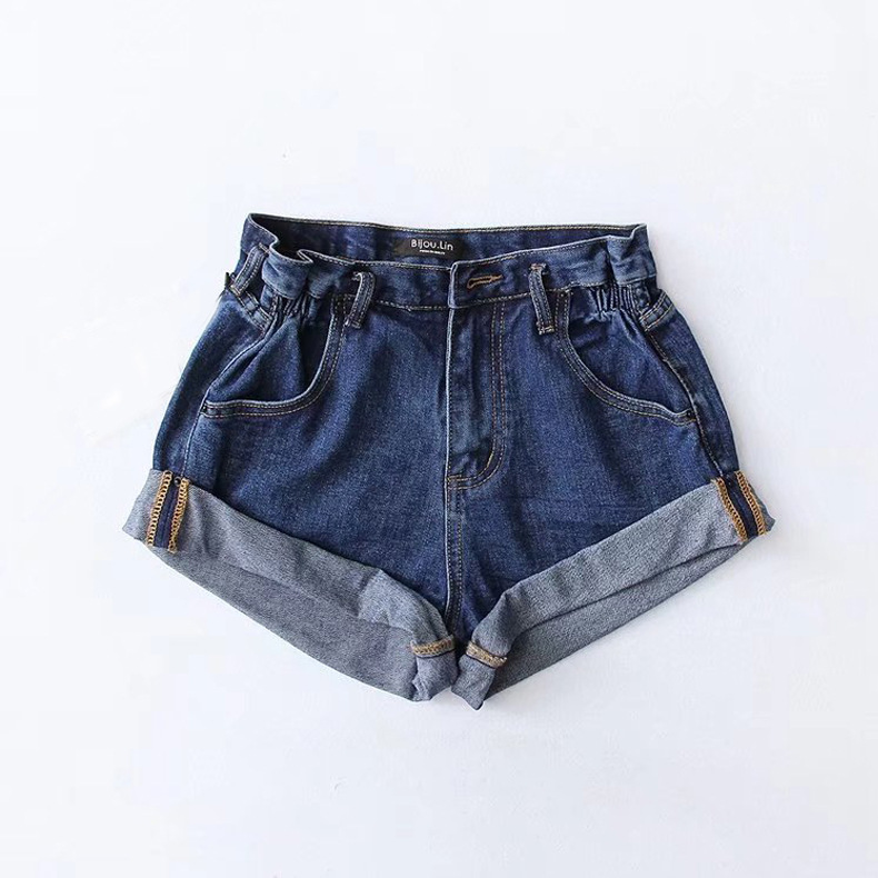 Elevate your summer look with our Fashion Five-color Elastic Waist Rolled Edge Denim Shorts – where comfort meets trendiness!