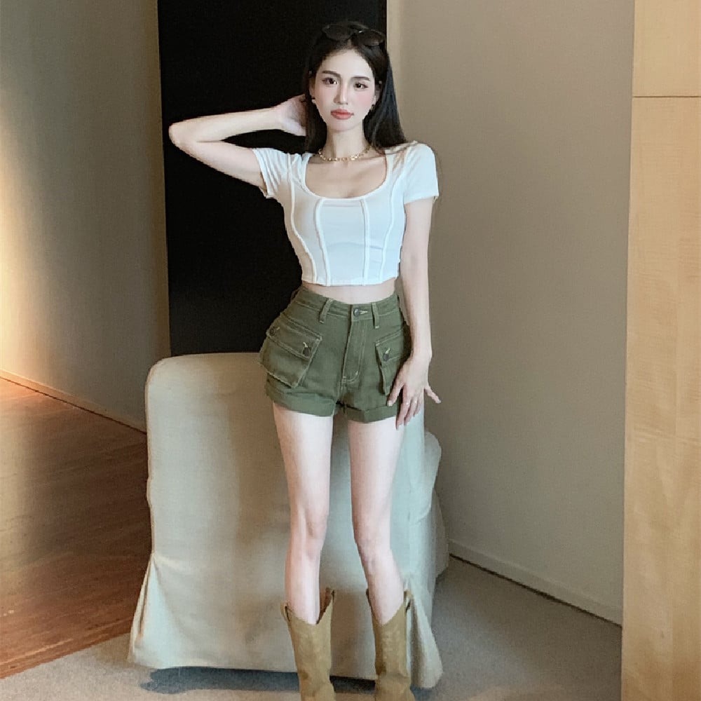 Featuring a high waist for a flattering fit, these shorts are crafted with a zipper button multi-pocket design, offering both practicality and style. Whether you're pairing them with a simple white t-shirt or mixing it up with vibrant colors, these shorts are versatile enough to match any outfit.