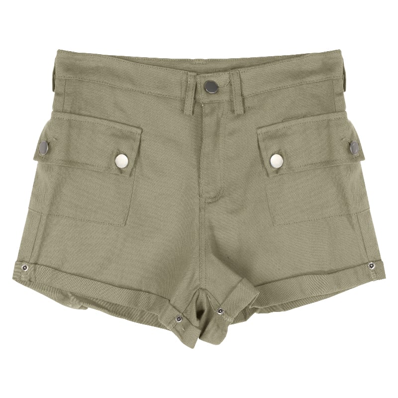 Get ready to turn heads this summer with our stylish Women's Khaki Rolled Cargo Denim Shorts. Designed for the modern woman aged 18-24, these shorts combine comfort and fashion seamlessly, making them a must-have in your warm-weather collection.